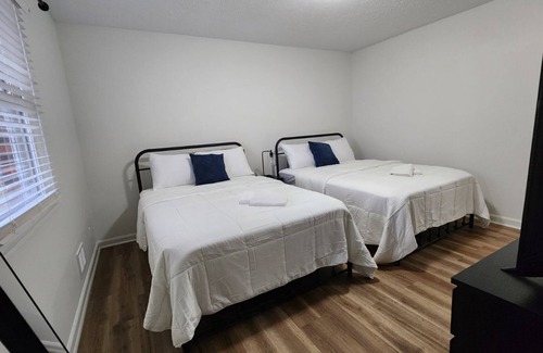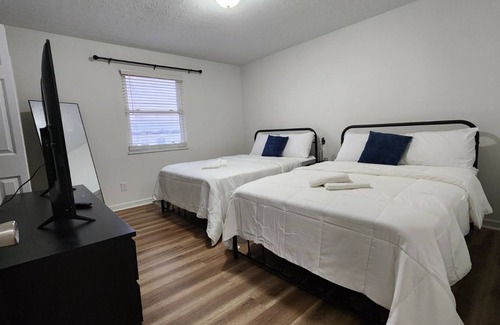 Welcome to our newly renovated townhouse, ideally located near restaurants, parks, and stores like Costco, Target, and Lowes. Just minutes from downtown, perfect for extended visits or quick getaways in Louisville. Our spacious layout caters to traveling nurses and work-from-home professionals. Join our 8-townhouse Airbnb community, each unit designed with exceptional decor and amenities including large TVs, a well-equipped kitchen, cozy bedrooms, and fast Wi-Fi for comfort and connectivity.