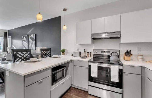 Located just steps from Bentonville’s famous Crystal Bridges Museum and Scott Family Amazeum, this beautifully designed 1-bedroom, 1-bath apartment sleeps 4. With a king bed and additional air mattress, the space is ideal for families or couples. Enjoy fast WiFi, keyless entry, and access to resort-style amenities, including a pool, fitness center, and dog park across the street. A welcoming space for both business and leisure stays, right in the heart of Bentonville.