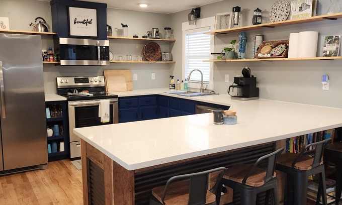 This Virginia Creeper Mountain View House started its life in 1947 when it functioned as a tobacco farm. You will find the original barn still located on the property. The home is a cozy 1495 square feet, located just outside of the town of Damascus, VA in a small neighborhood. The neighbors are friendly and many of them have lived in their homes their entire lives. The home offers all the modern comforts of a newly renovated space while retaining the character of the original home. With 4 bedrooms, 8 beds and many sleeping options, the best option for groups of up to 12 guests in Damascus. Come fall in love with the small-town charm, breathtaking mountain views, and big adventure vibes.