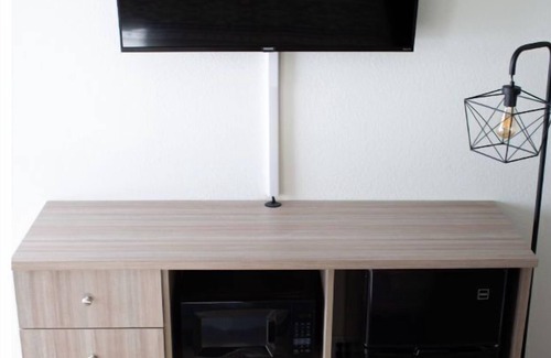 • Living Space: one king bed, Roku TV, microwave, mini-refrigerator, alarm clock, tea/coffee maker