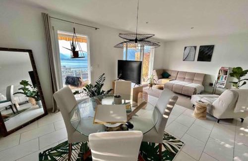 King Suite - Mountains & Lake Panoramic view is located in Chardonne, just 7.2 miles from Train Station Montreux and 12 miles from Lausanne Train Station. Private parking is available on site at this recently renovated property. Plein Ciel lift is 2.8 miles from the apartment and Alimentarium is 4.1 miles away. With free Wifi, this 1-bedroom apartment features a satellite flat-screen TV, a washing machine, and a fully equipped kitchen with a dishwasher and oven. Guests can take in the views of the mountain from the balcony, which also has outdoor furniture. This apartment is non-smoking and soundproof. Guests can also relax on the sun terrace. Palais de Beaulieu is 15 miles from the apartment, while Evian Resort Golf Club is 31 miles from the property. The nearest airport is Geneva - French Sector Airport, 52 miles from King Suite - Mountains & Lake Panoramic view.