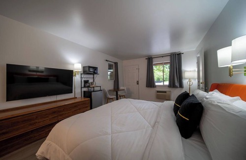 Featuring a king size bed, this room provides a cozy and inviting atmosphere during your visit. Has small sitting area, A/C, microwave, small fridge, and coffee maker.