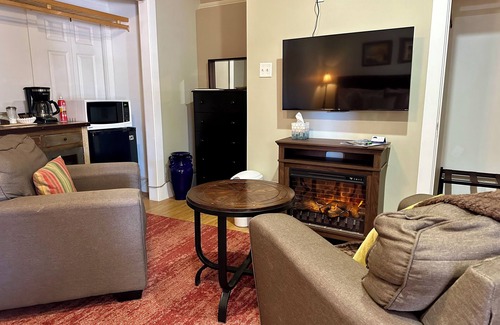 Enjoy this cozy Colorado mountain *private* suite with a King bed, large private bathroom and covered porch seating. This unit is NOT pet friendly. Includes a microwave, mini fridge, coffee maker and shared grill and fire pit. Located an easy walking distance to all the shops, parks, and restaurants in downtown Westcliffe, relax in this room for a weekend or an extended stay at Westcliffe Suites!