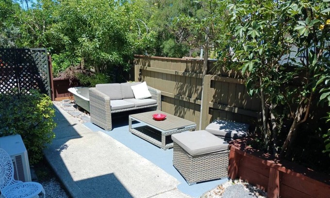 The Kingfisher Apartment, Mapua Village & Wetlands, is a spacious one bedroom unit with private access and off street parking superbly located close to the wetlands and sea. In a quiet cul de sac it's only a short five minute walk to all the village of Mapua has to offer. Turn right to central Mapua , bakery, pub, garage and supermarket or left to the famous Mapua Wharf with great shops and restaurants, a wine bar, a brewery, fish and chips and also part of the Great Taste Trail biking track from Nelson to Kaiteriteri Kingfisher apartment is ideally suited to a couple or single person with a generous main bedroom and ensuite shower/toilet. The lounge and kitchen open through sliders to the private patio to enjoy the last of the sun after a day seeing the delights of the region. An outside bath is also available . Easy walking to both central Mapua & Wharf both only 5 minutes away. Off street parking is available for 2 cars. Richmond and Motueka are 15 mins drive away with Kaiteriteri only a further 20 mins from Motueka. Easy days drive over to Takaka and Golden Bay Interact if you wish, privacy if you dont. We and our two cats are usually around and available for any information you may need to get the best out of your stay. Having lived in the area for many years and hosted many individuals and families we have a wealth of knowledge on what to do and where to go. Quiet seaside Mapua Village, located next to wetlands Next to Mapua Wetlands - Walk, ride and off street parking Really handy for those exploring the Great Taste Trail or the wealth of the regions fantastic mountain bike tracks. More info available on request.
