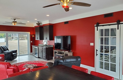 Kingsbay Dockside is located at 5757 Dockside Lane just across the water from Kingsbay Mansion. This unique offering is a newly renovated, Swiss country style home with a breathtaking panorama view of the water up both sides of the creek and a stunning view of Kingsbay Mansion in the distance. Just inside a marble floored entry foyer are bedrooms left and right. One hosts an en suite bathroom with a full shower. Dockside has an open great room just off the first-floor deck that has a comfy living space and ample dining room area, as well as, a new kitchen with spacious counters, bar seating for three and state of the art appliances. The kitchen is outfitted with a full array of dinner and cookware with kitchen utensils and appliances galore, with both a Keurig and Mr. Coffee makers. The newly added solarium is painted in English manor red, with ceramic floors, and granite wet bar. Five plush red and black recliners await guests to relax in front of an generous flat screen television. The solarium steps onto smart, exposed aggregate decking that surrounds a luscious swimming pool for those long hot summer days filled with sunshine and fresh air. Vacation living does not get any better! On the lower level ia a half bath and the Master Bedroom upstairs and a shower tub combination bathroom.