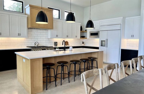 You’ll enjoy our fully equipped kitchen, where culinary dreams come true. You'll find a chef's gas stove and oven, a refrigerator, dishwasher, microwave, gas 6-burner stove top with a griddle, double oven, grill, kitchen island, dishes, and utensils. Enjoy your meals at the dining table and savor coffee brewed to your preference – K-cup, traditional drip, or French press. We also offer a coffee grinder, kettle, blender, ice maker, and toaster for your convenience. This kitchen is your culinary haven.