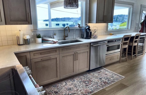 Start your morning with ferries crossing the Sound and end your day with Mount Rainier glowing in the distance—this waterfront home delivers upscale design, total comfort, and a front-row seat to some of the Pacific Northwest’s best scenery. Unobstructed views stretch from the Cascade Mountains to the north down to the Seattle skyline to the south, with nothing but open water, wildlife, ferries, and marine traffic in between. The walk-on ferry can have you downtown Seattle in about 35 minutes. Inside, every detail is thoughtfully arranged and beautifully finished. Just one block from the heart of Kingston, you're steps from restaurants, shops, the marina, a seasonal farmer’s market, and live music at the port. You may not want to leave this luxury retreat—but everything is right here when you Inside, every detail is thoughtfully arranged and beautifully finished. The home features panoramic water views, luxury furnishings and a fully equipped chef’s kitchen. With three bedrooms and three full bathrooms, it’s set up nicely for families or groups, but perfectly intimate for two. One block from downtown Kingston, you’re steps from delicious local restaurants, shops, the marina, a seasonal farmer’s market, and live music at the port. You may not want to leave—but everything is right here, downtown, when you do.