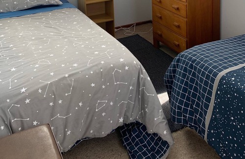 Initial booking is for up to four guests and includes master bedroom, twin bedrooms, main bathroom and second downstairs toilet. For bookings of five or more the sleepout and second (downstairs) shower will be included. If you would like use of the sleepout with less than five guests please book for five t cover the extra cleaning and linen etc.