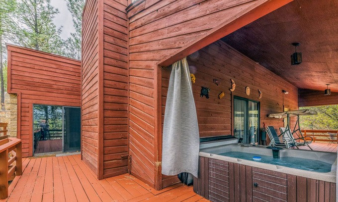 Kizzy's Kove! Close to Midtown with hot tub! is located in Ruidoso. Kizzy's Kove! Close to Midtown with hot tub! provides accommodation, featuring Air Conditioner, Parking, TV, among other amenities. This Cabin features Air Conditioner, Parking, TV, to make your stay a comfortable one.