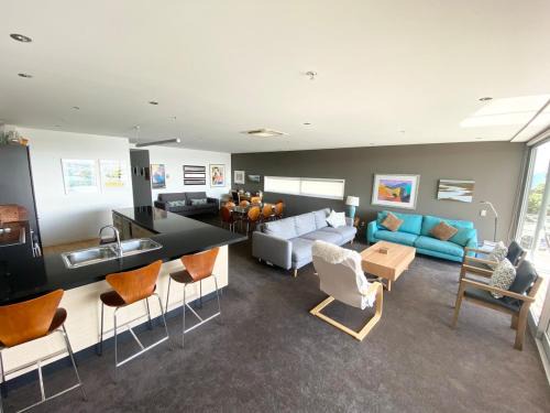 Knights' Retreat Napier is a recently renovated apartment in Napier where guests can make the most of its outdoor swimming pool, private beach area, and garden. This beachfront property offers access to a balcony, free private parking, and free Wifi. Bluff Hill Lookout is 2.3 miles away and Splash Planet is 13 miles from the apartment. Offering a terrace and sea views, the spacious apartment includes 3 bedrooms, a living room, flat-screen TV, an equipped kitchen, and 2 bathrooms with a walk-in shower. Guests can take in the views of the pool from the patio, which also has outdoor furniture. For added privacy, the accommodation features a private entrance. Popular points of interest near the apartment include Napier Beach, McLean Park, and Pania of the Reef Statue. Hawke's Bay Airport is 3.7 miles away.