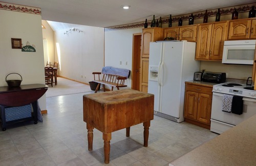 We want you to feel at home in the woods at the Knotty Knob! The area has great hiking and fishing and little neighboring towns to enjoy. There is a full kitchen to host your friends and family's connection time and great wifi that allows for contactless check-in.