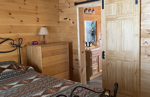 This home is located on 30 acres with hiking trails, frog pond, stream, small cave and wildlife. There’s a large yard to pitch a tent, play ball or just sit around the fire pit. There’s a front deck with a hot tub to enjoy the surroundings and back deck with BBQ grill. Plenty of parking in the circular driveway. You'll be pleasantly surprised walking in the house as we have completely remolded every room to resemble a log cabin with knotty pine through out. Featuring an open floor space, the living room has a sleeper sofa, sleeper loveseat & 2 recliners. There’s a large screen TV and high speed WiFi. In the dining room, the table seats 8 along with a bar and 4 stools. Queen bed in master bedroom and the master bathroom has a walk in shower laid in slate tile with a bench. Second bedroom also has a queen bed and second bathroom features a jacuzzi tub with shower.