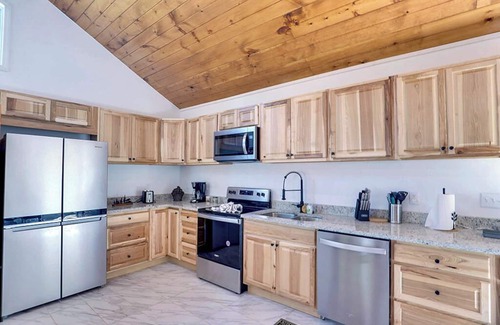 The fully stocked kitchen is a chef's dream, equipped with everything needed to whip up delicious meals. Experience the ultimate relaxation at Deer Retreat, where luxury meets nature in perfect harmony. Book your stay today and create unforgettable memories.