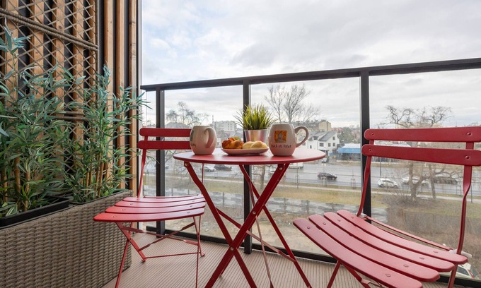 Kokoryczki 5 | Modern Grey and Red Studio | 2 People | Furnished Balcony | Warsaw is located in Praga Poludnie. Kokoryczki 5 | Modern Grey and Red Studio | 2 People | Furnished Balcony | Warsaw provides accommodation, featuring Wheelchair Accessible, Balcony/Terrace, Accessibility, among other amenities. This Apartment features Wheelchair Accessible, Balcony/Terrace, Accessibility, to make your stay a comfortable one.