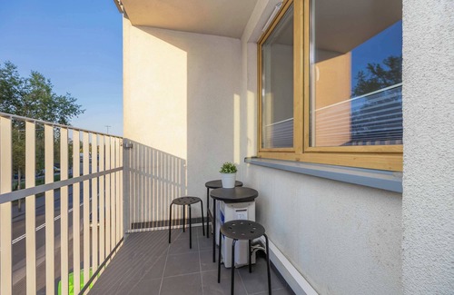 Modern design and functionality. Perfect for a family or group of friends. Air conditioning in the living room and bedroom. Spacious balcony with lounge furniture. Fully equipped kitchenette. Free Wi-Fi. Underground parking. VAT invoices available upon request.