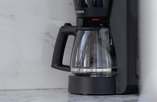 Oven, dishwasher, induction hob, steam extractor, drip coffee maker, fridge, freezer, electric kettle, tableware and kitchenware, wine glasses.