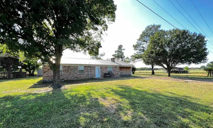 Come enjoy a nice and relaxing get away in this ranch house. Have a fresh cup of coffee while you enjoy a nice tranquil morning. Enjoy beautiful sunsets and clear starry nights. Enjoy watching the fun farm animals. Fire pit and picnic area available for your enjoyment. No animals permitted. High speed WIFI available.