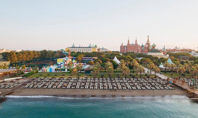 Inspired by the original palace in Russia, Kremlin Palace offers the chance to discover the home of the Russian Czars. With a private beach and a wide selection of pools, the Kremlin Palace offers 5-star water sports facilities. This all-inclusive resort provides 6 á la carte restaurants and 7 bars. The hotel also offers special kid's entertainment. Unwind and rejuvenate at the full spa center with reflexology, massages, seaweed treatments and more. Relax at the sauna and Turkish bath, or take a dip in the semi-Olympic heated indoor pool. Kremlin Palace covers an area of 246 ft², including a 3-slide aqua-park for children and 6-slide aqua-park for adults. Guests can also take dancing courses, practice archery or visit the nearby caves. Kremlin Palace is located just 7.5 mi from Antalya Airport and 13 mi from the center of Antalya.