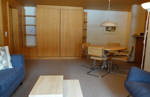 Nice apartment with a separate kitchen, a eating table, living room with a sitting area, TV, radio, phone an two foldaway beds. 1 bedroom with a double bed and a big cupboard. Bathroom with a bathtub. Nice balcony and a terrace on the house top, which is accessible for the other people. Public transport included in the Simmental and Saanenland with the SIMMENTAL CARD: Overnight guests in the Lenk-Simmental holiday region travel free of charge on public transport for excursions with a valid guest card.