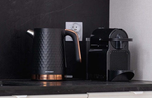 Induction hob, microwave, electric kettle, dishwasher, fridge with freezer, coffee maker (for capsules), set of dishes, kitchen utensils
