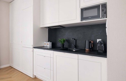 This functional and modernly furnished studio is an excellent choice for both couples wishing to spend a romantic time in Krakow and business travellers who value comfort and convenience. In the bedroom you will find a comfortable double bed, which will ensure a restful night's sleep after a day full of excitement or intensive work. Evening relaxation will be enhanced by a SmartTV with access to your favourite apps. The kitchenette is equipped with modern appliances such as a fridge, microwave and coffee maker to make every morning aromatic and full of energy. The functional space ensures that you can prepare your favourite meals. The bathroom is comfortable and functional, equipped with a modern shower, a washbasin and a washing machine, which is particularly useful during longer business stays. Bright colours and carefully selected accessories create a pleasant atmosphere. Fast and stable Wi-Fi is available throughout the apartment, allowing you to work remotely, hold video conferences or plan your next day's stay without any problems. In addition, you can come to the apartment with your pet.
