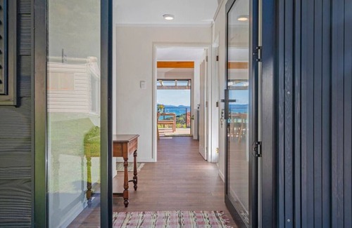 Escape to Kuaotunu and enjoy the private seclusion and Ocean views on the the large decks of this recently modernised house that is only a short stroll to Kuaotunu Beach, Luke's Kitchen, Café and Kuaotunu Store.