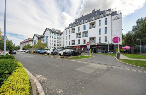 This modern building is located in a quiet neighborhood, so it has a friendly and intimate atmosphere to offer guests. It is a perfect place to relax for parents traveling with their children, couples, as well as groups of friends and acquaintances. The grocery store is just a minute's walk away, allowing for convenient and quick shopping. There is an atmospheric cafe in the building, so you don't have to go far to have a nice time. The nearest restaurant is only a 2-minute walk away, and you can find a children's play space within a 4-minute walk. It only takes 7 minutes to reach the park on foot, and it takes only 12 minutes to reach the outdoor gym. It takes less than a quarter of an hour to reach the shopping center, and 18 minutes by car to the city's market with its beautiful architecture. It takes half an hour to get to the airport, and 7 minutes to get on foot to the railway station. Outdoor enthusiasts can reach a water park in 6 minutes and a bowling alley and tennis court in 11-13. Motorized guests have an outdoor parking space located next to the building.