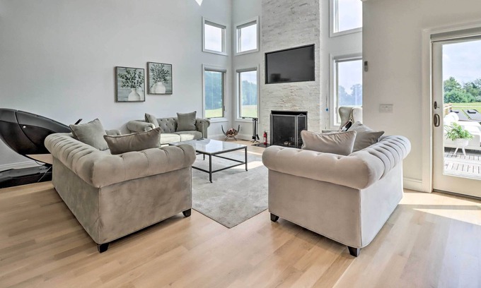 Fully equipped with a ping pong table, a private hot tub, and a fire pit, this 4-bedroom, 4-bathroom vacation rental has everything you could possibly need for a trip jam-packed with fun. Located less than 5 miles away from Beltzville Lake and in close proximity to several state parks, this contemporary home is perfect for travelers looking to explore the beauty of Kunkletown. End your days with some friendly competition in the game room or cozy up in the home theater for a relaxing movie night.