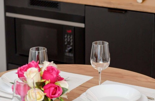Aesthetically designed apartment has the ability to accommodate up to 4 people - perfect for a trip with family or friends! The highly functional 37 m² space consists of a living room with a kitchenette, a bedroom and a bathroom with a shower. The living area, equipped with a comfortable sofa and Smart TV, is the perfect place for rest and relaxation. There is also a balcony with garden furniture, where you can take a breath of fresh air and enjoy a delicious morning coffee. The cozy bedroom offers a very comfortable double bed, as well as a dressing table and a stylish closet. The apartment has access to high-speed free Wifi internet. A wide range of amenities and comprehensive equipment of the apartment with the necessary accessories and equipment for kitchen and bathroom guarantees a comfortable stay. A complimentary set of toiletries (soap, shampoo and shower gel), towels and linens are provided to facilitate the start of each visit. On the apartment's equipment guests will also find a washing machine, which will certainly be appreciated by families with small children or those planning a longer stay. The apartment is distinguished by its careful finishing and beautiful design. Modern interior design with colorful design elements and high quality equipment guarantee an unforgettable stay.