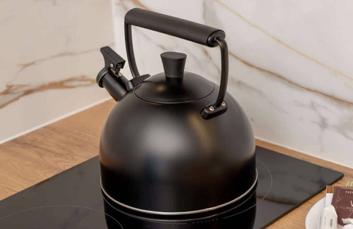 Induction cooktop, refrigerator with freezer function, microwave oven, induction kettle, coffee maker (cob), toaster, dishwasher, set of dishes, kitchen utensils, table and chairs