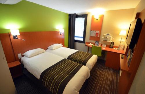 This functional hotel and restaurant is in East Dijon, a 15-minute drive from the train station, the exhibition center and city center. It provides comfortable rooms with free Wi-Fi access. It has an outdoor, heated swimming pool. The Kyriad Dijon Est Mirande is in a great location for a stopover. Central Dijon is only a short drive away and the hotel boasts easy access to the A6 and the A31 highways. Piscine Olympique Tram Station is just 325 ft away. Free private parking is available at the Kyriad Dijon Est Mirande, making it easy to explore the Bourgogne region by car. Recreational facilities at the Kyriad Dijon include a fitness suite and there is an 18-hole golf course a short drive away. The friendly and attentive staff at the Kyriad Dijon Est Mirande will be happy to help you organize your stay in Dijon 24 hours a day.