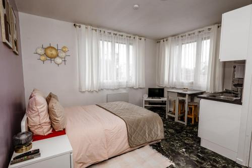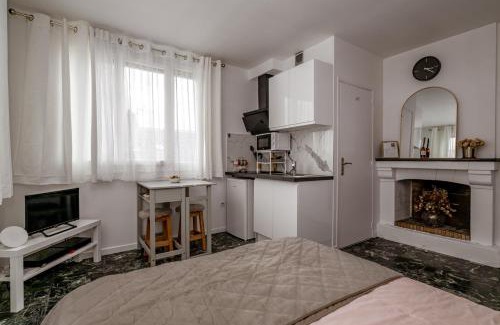L'écrin de Camille et Marie offers accommodations in Bobigny, 5.1 miles from Gare du Nord and 5.2 miles from Gare de l'Est. The property is around 5.5 miles from La Cigale Concert Hall, 5.6 miles from Pigalle Metro Station, and 6.1 miles from Pompidou Center. Free Wifi is available throughout the property and Stade de France is 4.5 miles away. The apartment is composed of 1 separate bedroom, a fully equipped kitchen with a microwave and a toaster, and 1 bathroom. The tiled floors, fireplace, and peaceful vibe add to the ambience of the room. For added privacy, the accommodation has a private entrance and is protected by full-day security. Sacré-Coeur is 6.7 miles from the apartment, while Notre Dame is 6.8 miles away. Paris - Charles De Gaulle Airport is 8.7 miles from the property.