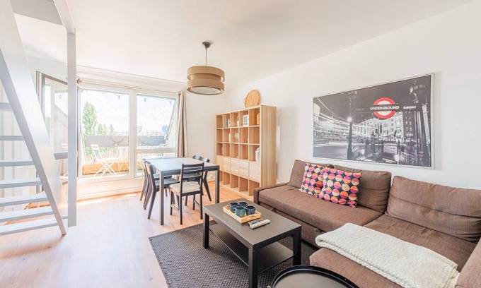 This charming 3-storey 60 m² flat in Strasbourg can accommodate up to 4 people. Located on the 7th floor (with elevator), it comprises an attractive 16 m² living room, fully-equipped kitchen, two bedrooms and a bathroom. Housekeeping is included in the rental price and 4* hotel-quality linen is provided (sheets, towels, tea towels). Your bed will be made up on arrival.