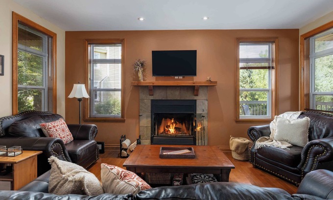 ✔ The cozy living room features a wood-burning fireplace and smart TV 📺