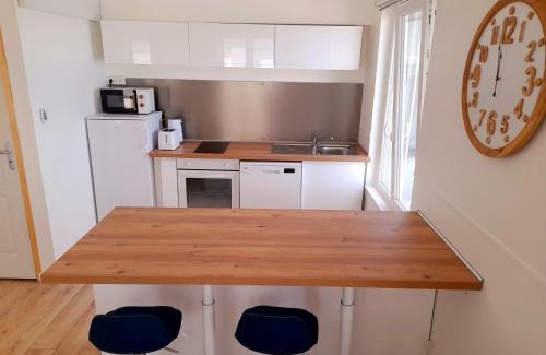 L'appartement LA PLAGE offers accommodations in Le Portel, a few steps from Plage du Portel and 2.7 miles from Boulogne-sur-Mer Train Station. The property is around 3.1 miles from Boulogne-sur-Mer Tintelleries Train Station, 3.4 miles from Boulogne-sur-Mer Museum, and 19 miles from Cap Gris Nez. Rang du Fliers-Verton-Berck Train Station is 30 miles from the apartment and Maréis Sea Fishing Discovery Centre is 16 miles away. With free Wifi, this 1-bedroom apartment features a flat-screen TV, a washing machine, and a fully equipped kitchen with a dishwasher and oven. Towels and bed linen are available in the apartment. The property offers sea views. Cap Blanc Nez is 22 miles from the apartment, while Calais Railway Station is 24 miles from the property.
