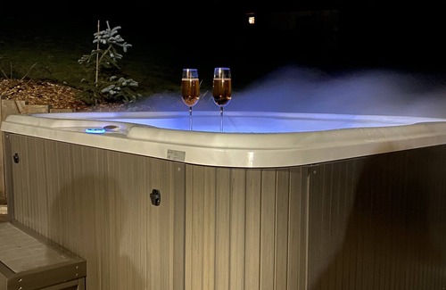 Relax in the hot tub (enjoy the outdoor furniture!) or sip a drink in the garden of this 538-sq-ft chalet. As for the great indoors, you can come inside and enjoy the TV and stereo.