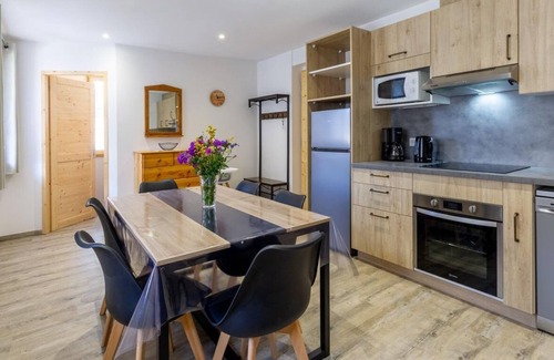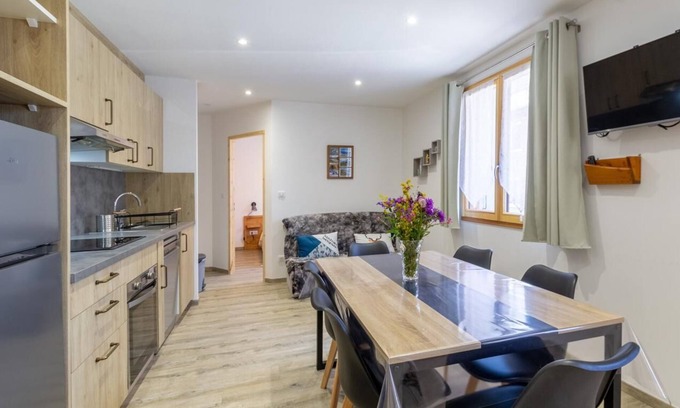 Apartment on the ground floor of a village house including a second unoccupied accommodation. Entrance hall. Living room - kitchen (1 sofa bed 90x190 cm), 1 bedroom (1 double bed 160x190 cm), 1 mountain corner (2 single bunk beds 80x200 cm), separate toilet, bathroom (shower). Public parking in front of the cottage. Sheets and towels are not provided. Comfortable cottage in the center of Termignon. Apartment completely renovated in a contemporary spirit. Simple and warm interior. Living room facing south providing light. Quality immediate environment.