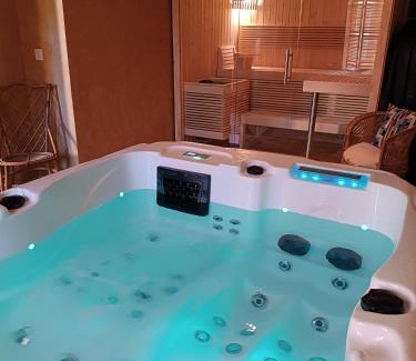 Featuring garden views, L'Escapade Authentique in Brouchaud features accommodations, an infinity pool, a garden, and barbecue facilities. There's a spa and wellness center at this property with a sauna, a hot tub, and a hammam. There's a sun terrace and guests can access free Wifi and free private parking. At the vacation home, all units come with a wardrobe and a flat-screen TV. Every room is equipped with a coffee machine and a private bathroom with a walk-in shower and bathrobes, while certain rooms come with a fully equipped kitchen. At the vacation home, every unit is equipped with bed linen and towels. Lascaux is 18 miles from the vacation home, while Hautefort Castle is 13 miles from the property. Brive Dordogne Valley Airport is 40 miles away.