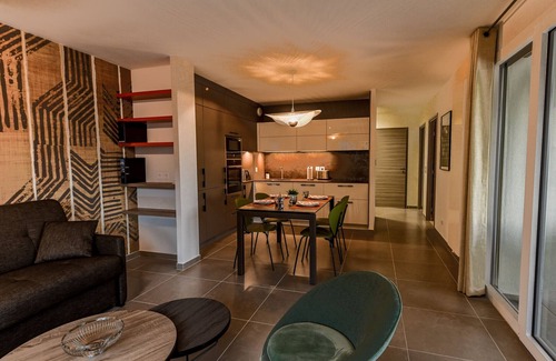 The living room, complete with a sheltered terrace, has all the comforts of a four-star: an HD flat screen with its soundtrack and Blue ray player as well as high-speed wifi internet access and a bunch of French channels. and international.