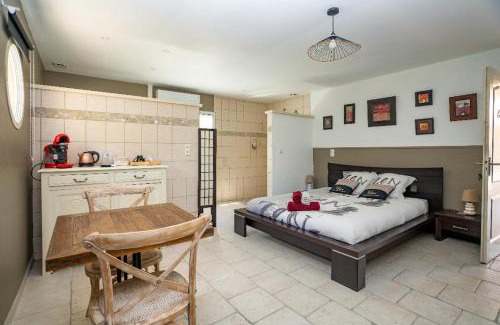 L'Hacienda offers a hot tub and free private parking, and is within 3.2 miles of La Palmyre Zoo and 7.4 miles of Royan Golf. Wellness packages is available for guests. On clear days, guests can head outside to enjoy the guest house's outdoor fireplace, or simply kick back and relax. All units feature air conditioning and a satellite flat-screen TV. Each room comes with a coffee machine, a private bathroom, and free Wifi, while certain rooms will provide you with a terrace and some have garden views. At the guest house, each unit comes with bed linen and towels. Buffet and continental breakfast options with fresh pastries, fruit, and juice are available. The guest house also features a pool with a view and a spa facilities for guests to relax in. Guests can relax in the garden at the property. Notre Dame Church is 11 miles from L'Hacienda, while Royan Train Station is 12 miles away. La Rochelle - Île de Ré Airport is 50 miles from the property.