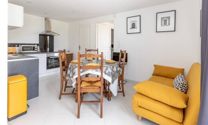 Situated in a green setting, this charming house will win you over with its comfort and enchanting setting in the heart of a large wooded park! This 55 m² pied-à-terre with shared swimming pool is the ideal place to stay with your family or friends, and is not far from must-see sites such as the Château de Brézé, the amazing troglodyte caves of La Sablière and the beautiful towns of Angers and Saumur!