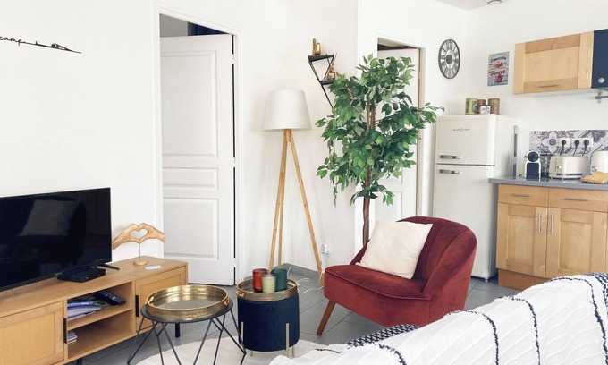 L'oiseau d'or au bord de mer * - 2 pers - Ground floor apartment is located in Fecamp. L'oiseau d'or au bord de mer * - 2 pers - Ground floor apartment provides accommodation, featuring Wellness Facilities, Laundry, Entertainment, among other amenities. This Apartment features Wellness Facilities, Laundry, Entertainment, to make your stay a comfortable one.