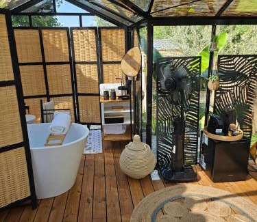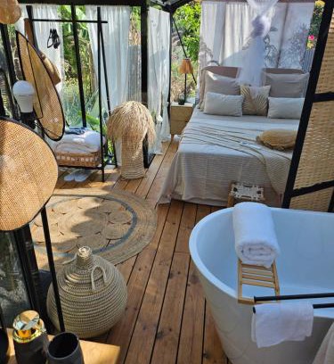 Providing a garden, L orangerie de casaoma offers accommodations in Prunelli-di-Fiumorbo. This luxury tent provides air-conditioned accommodations with a terrace and free Wifi. Outdoor seating is also available at the luxury tent. Towels and bed linen are provided in the luxury tent. The accommodation is non-smoking. Bastia - Poretta Airport is 46 miles away.