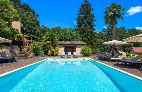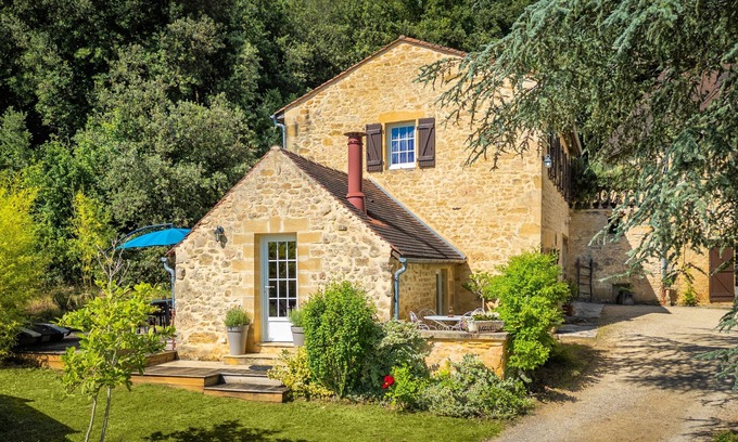 While being in absolute calm, only 5 minutes from the medieval town of Sarlat-la-Caneda, close to the Dordogne and its water sports,
