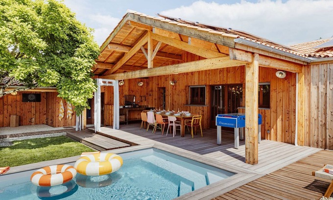 A little bit of a holiday camp feel... luxury version with a "4 seasons" games room (ping-pong, darts, table football), a pétanque court , a swimming pool with a secure cover (heated from May to September, temperature varying according to the season) and a fire pit area to pop your popcorn, enjoy your grilled marshmallows or concoct your chocolate drink!