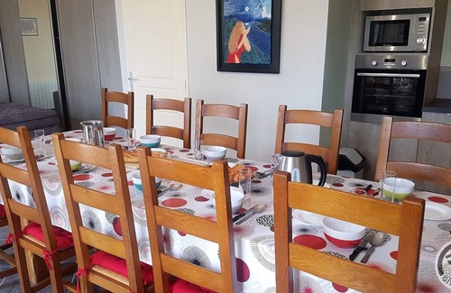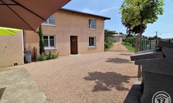 Large self-contained and comfortable accommodation at the heart of the Beaujolais famous vineyards, in building adjoining owners'- Anne-marie & Armand (retired winegrowers) - house. Modern décor. Ground floor : large living room (fitted kitchen area, dining & lounge areas). WC. 1st floor : hall leading to laundry room (washing machine, tumble drier), separate WC and 2 bedrooms (5 single beds that can be joined to form queen-size beds) (4 single beds). Private facilities in each room (shower room, separate WC). 2nd floor : 1 bedroom (3 single beds, 2 of them can be joined) with private shower room including WC. Outdoors : unfenced courtyard to front, garden furniture, barbecue. Beaujolais tasting can be arranged on request (wine cellar on site).
