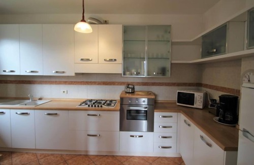 7-room villa 160 m2 on 2 levels on 1st floor. Practical furnishings: living/dining room with TV. Exit to the terrace. 1 room with 2 beds. 1 room with 2 beds. Exit to the terrace. 1 room with 2 beds and shower/bidet/WC. Kitchen (4 hot plates, dishwasher, microwave, freezer, electric coffee machine). Bath/shower/bidet/WC. Upper floor: (spiral staircase), 1 room with sloping ceilings with 2 beds. Living/dining room with 1 double sofabed and TV. Exit to the balcony. 1 room with 2 beds. Kitchenette (4 hot plates, oven, microwave, freezer). Bath/shower/bidet/WC. Gas heating (extra). Heating available only from 15.10. to 15.04. Small balcony, terrace 15 m2. View of the valley. Parking (2 cars). No internal connecting door between the floors. The villa consists of two independent apartments (a four-room apartment on two levels and a two-room apartment on the upper floor) connected by an external staircase. IT012020C23CXDFP25,IT012020C25VB9UQ7Q