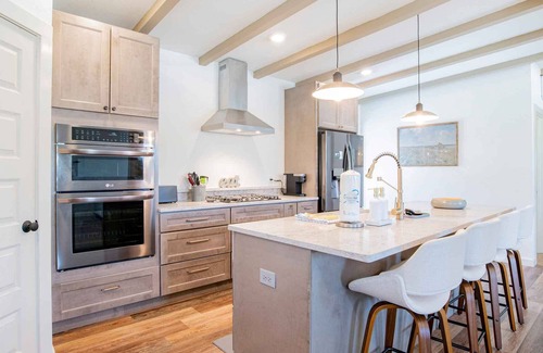 Each bedroom allows guests to unpack and unwind in their own space. The primary bedroom and second bedroom also include a Smart TV in case you have members of your crew wanting to watch more than one movie or show at a time. The bathrooms are spacious and make it easy for guests to get ready for a night out on the town or simply to get ready for bed. In case your beach towels and swimsuits need a refresh, a washer and dryer are available.