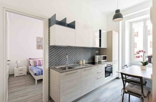 In the lively Esquiline district of Rome there is La Casa di Emanuela which is an apartment of two rooms:in the first room you can find a double bed,desk for laptop ,armachair and Tv set with Netflix .In the second one there is a single bed and a Tv set with Netflix. There is also a small living room with a sofa, a kitchen furnished with oven, microwave, Nespresso coffee machine, dishwasher, washing machine,fridge. The bathroom is equipped with shower,towels,body soap,shampoo.The whole apartment is equipped with air conditioning and a free Wifi.