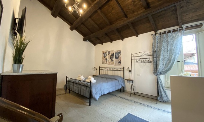 In the historic center, a few steps from the most important city tourist attractions and entertainment venues, you will be hosted in a cozy apartment on the top floor of an ancient building. The rooms, very bright and equipped with modern comforts, recently renovated, respect the original charm of the house with period beams and floors. The house offers two double bedrooms, each with a private internal bathroom, and a fully equipped kitchen.